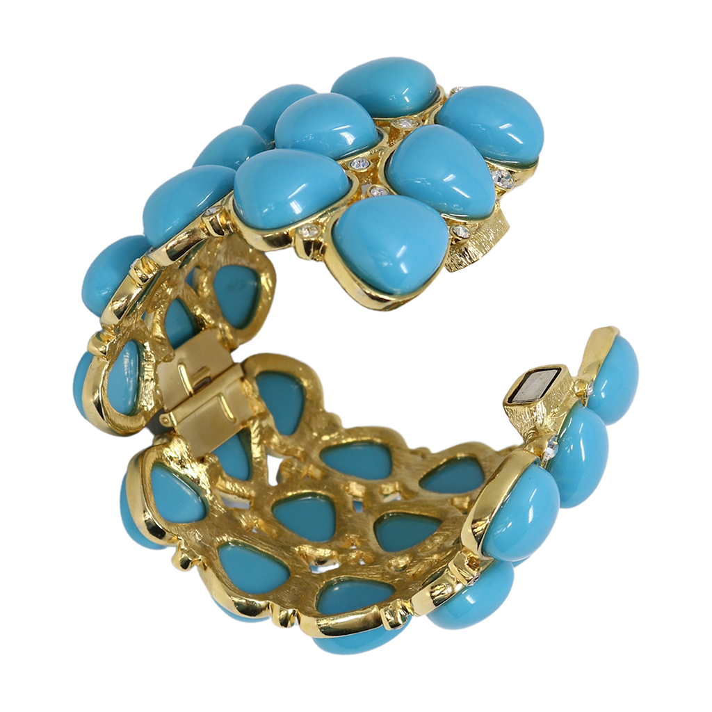 Kenneth Jay Lane Jewelry Gold Hinged Coral Shape Bracelet With Turquoise Dots | Gold & Turquoise