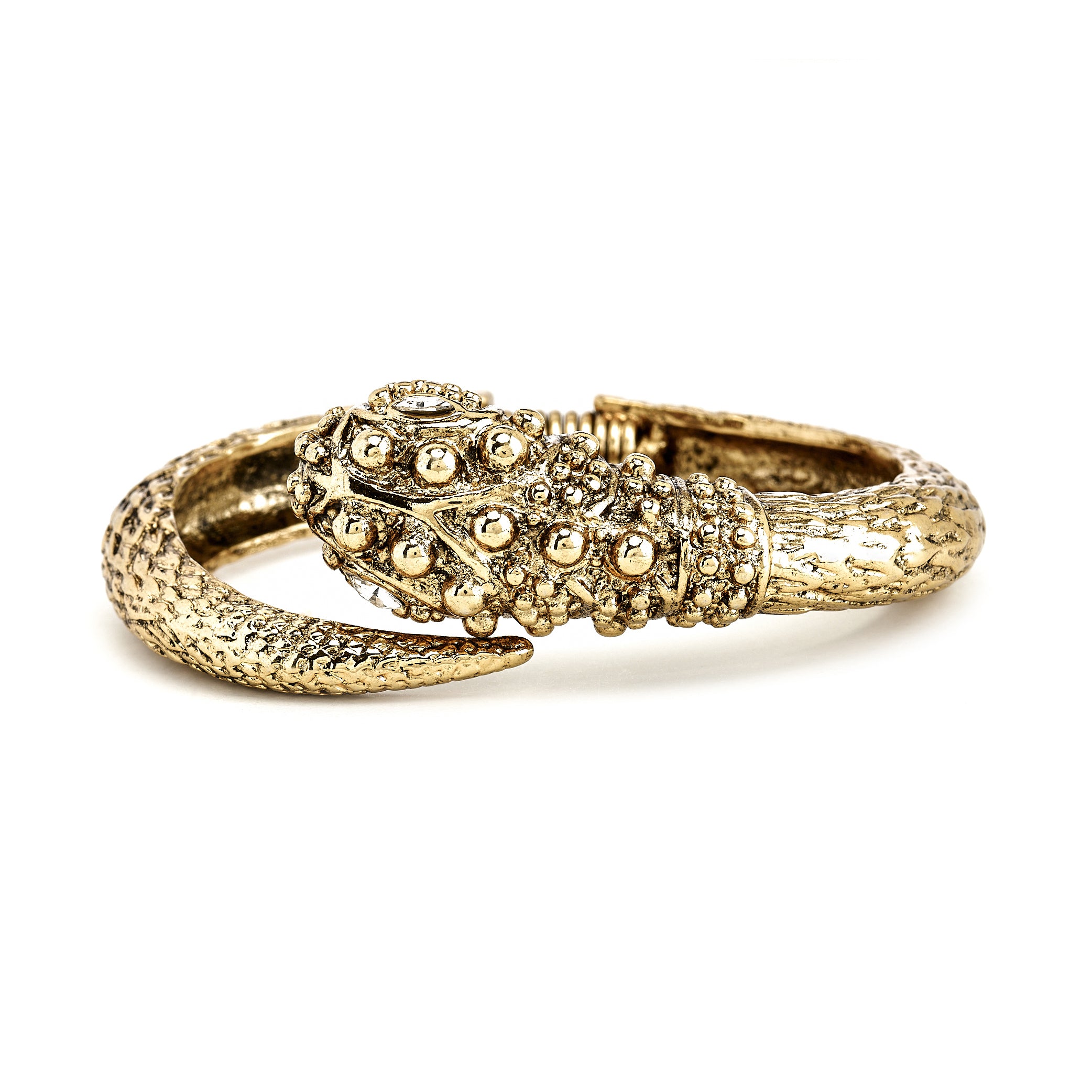 Kenneth Jay Lane Jewelry Antique Gold Snake Head Bracelet | Light Antique Gold