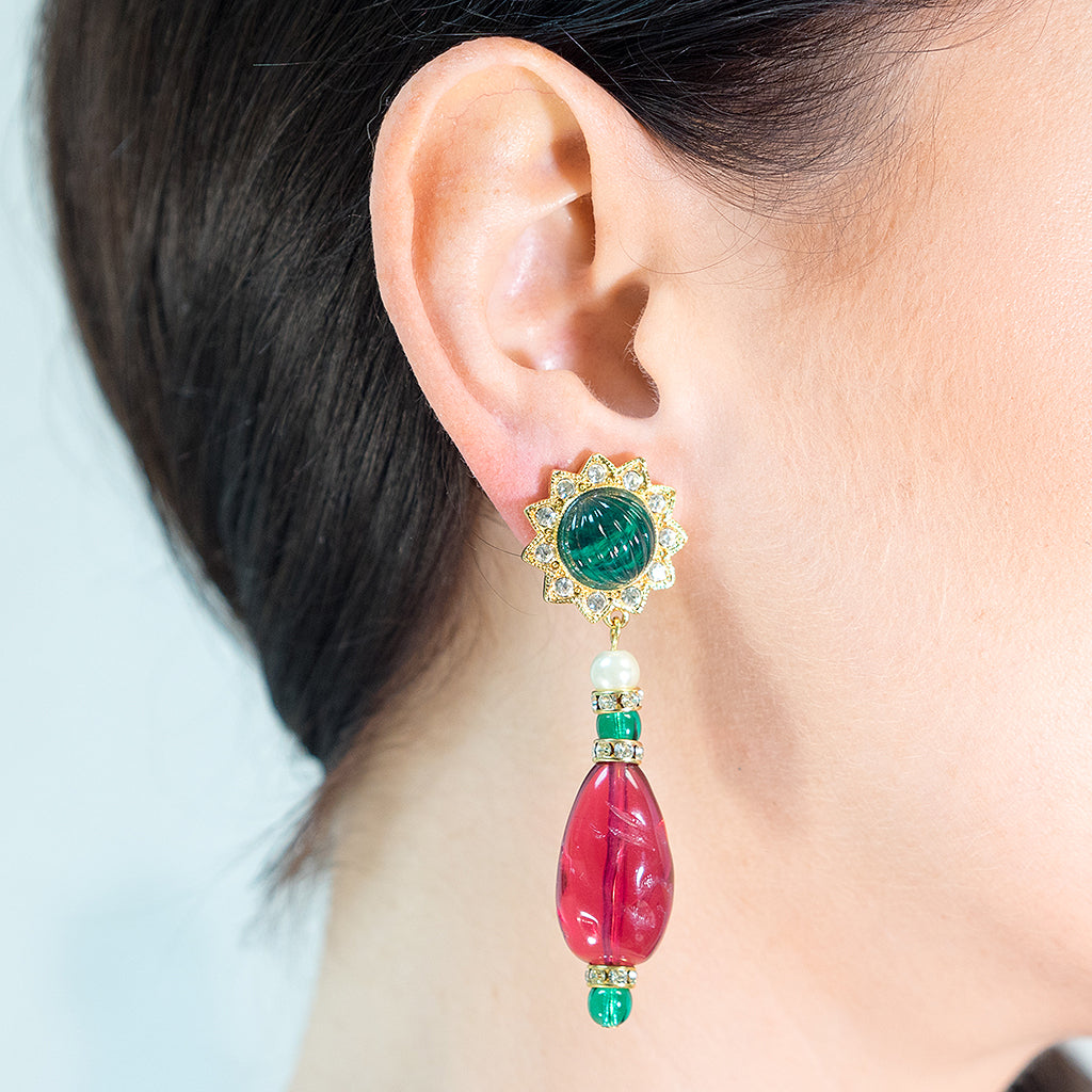 Kenneth Jay Lane Jewelry Emerald And Ruby Clip Earrings | Gold & Emerald