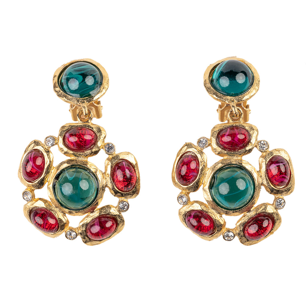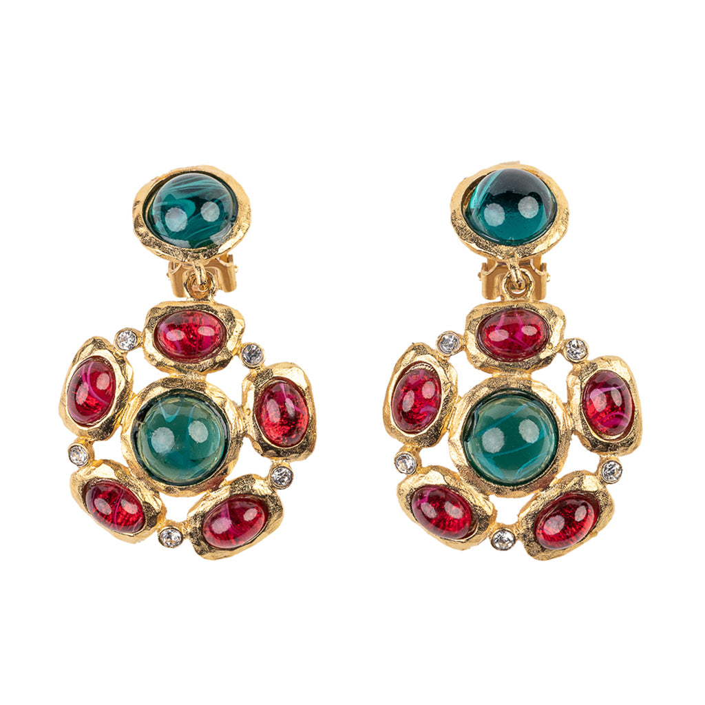 Flawless satin gold featuring bold crystal stones elevate these clip earrings.