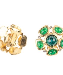 Catch their eye with these darling satin gold and crystal clip-on earrings embellished with emerald cabochons.
