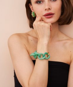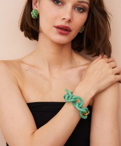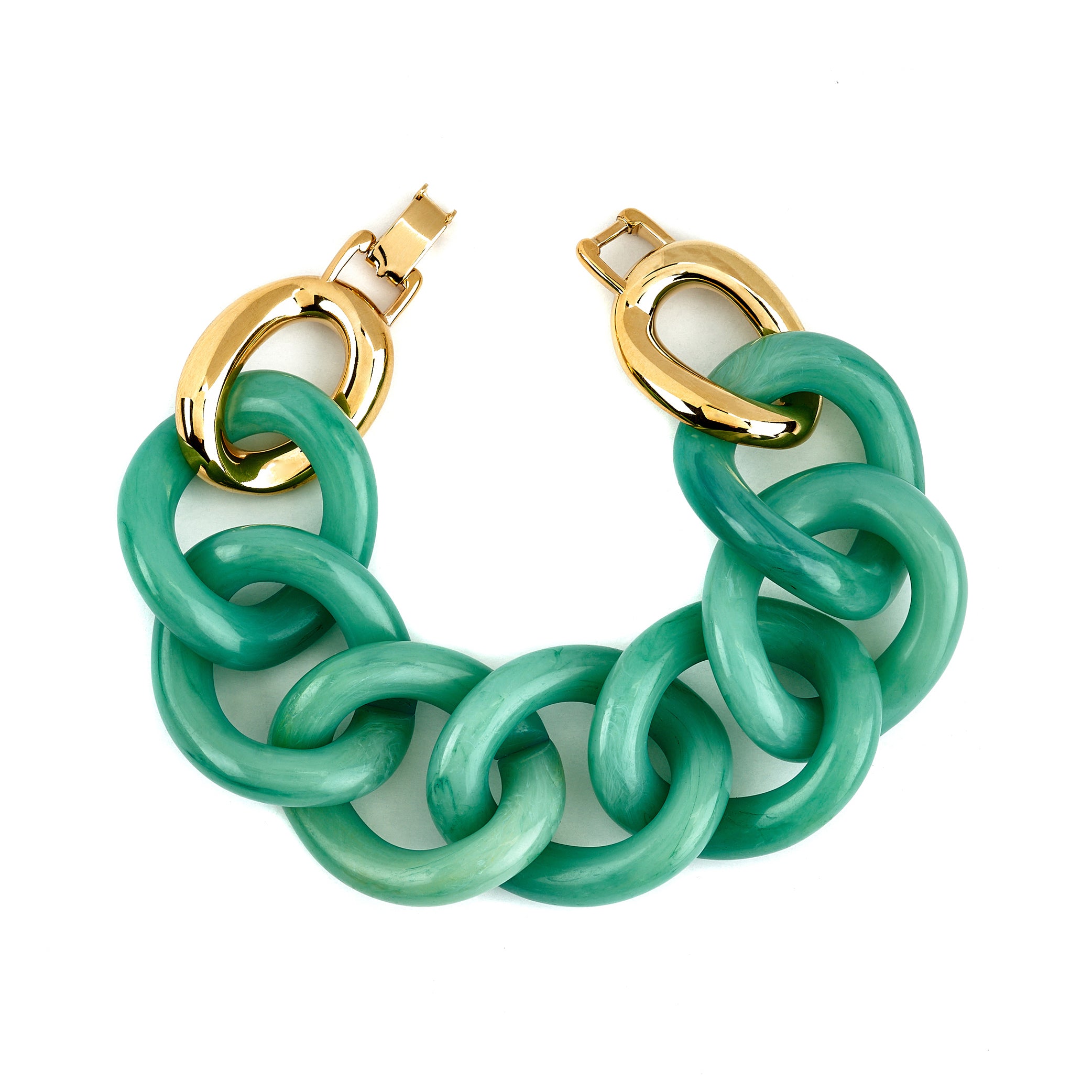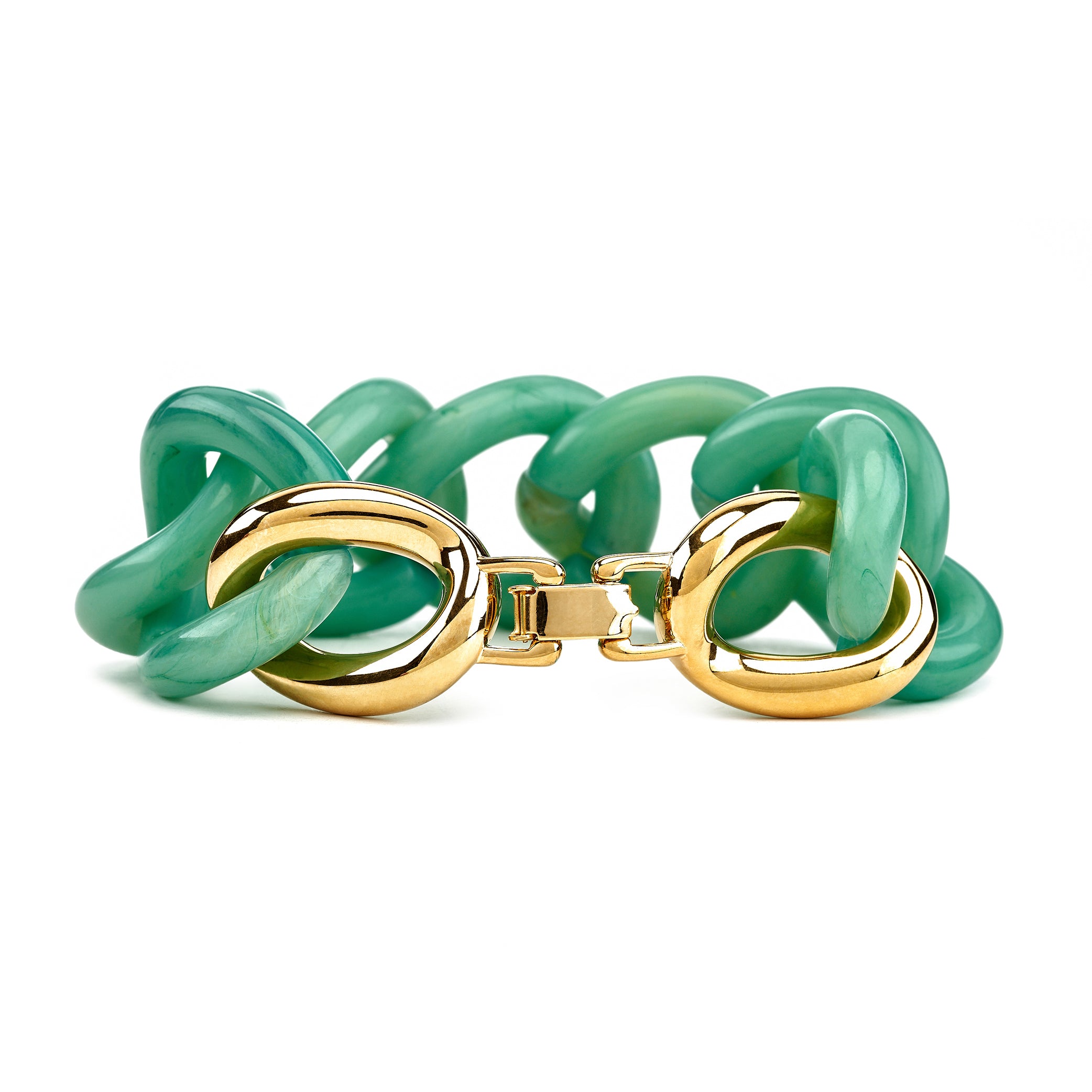Sleek and sophisticated, this jade resin link bracelet features a stylish gold foldover clasp for a refined and timeless look.