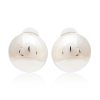 Slender wire hoops with a large silver ball add a chic, modernist vibe to your look.