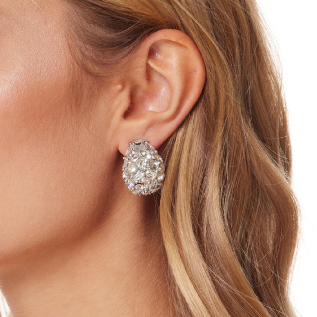 Kenneth Jay Lane Jewelry Silver And Crystal Oval Stones Domed Clip Earring | Crystal