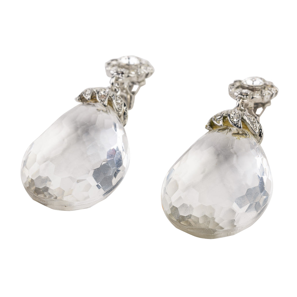 Kenneth Jay Lane Jewelry Silver Clip Earring With Rhinestone Center | Silver & Crystal & Clear